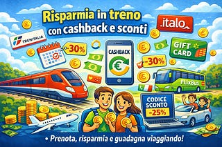 Scopri come ottenere biglietti treno scontati con offerte ufficiali, codici sconto, cashback e alternative economiche per Trenitalia e Italo.