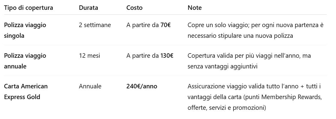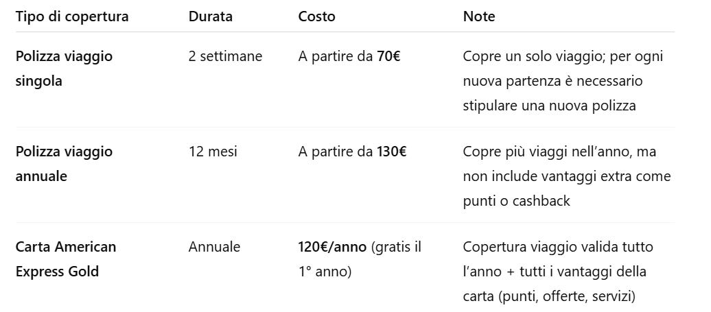 Confronto economico: AMEX Gold vs polizza singola